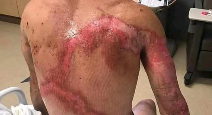 Julián intentó moverse, pero el dolor lo detuvo. Entonces miró su hombro… y la piel parecía haber sido alcanzada por una corriente de fuego. Rojos intensos, zonas abiertas, una marca que jamás desaparecería del todo. La enfermera se acercó, limpiando con cuidado las heridas mientras explicaba: