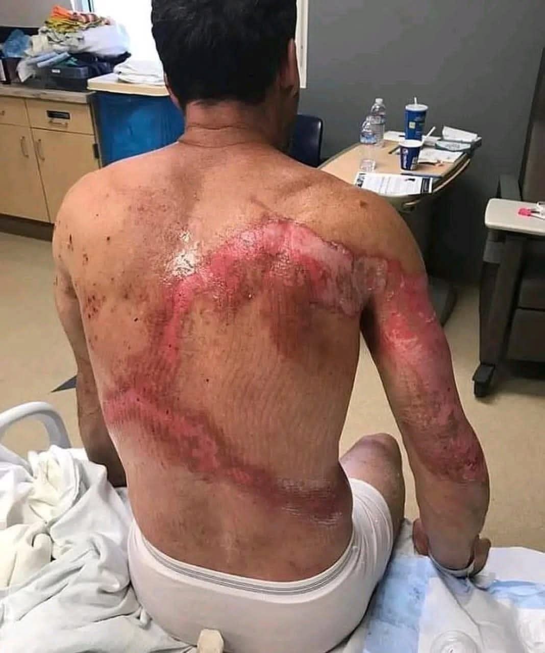 Minutos después, aunque para él parecieron horas, la puerta fue derribada por paramédicos. Lo encontraron inconsciente, con la piel enrojecida, ampollada, marcada por un patrón casi serpenteante que recorría toda su espalda y uno de sus brazos. Las picaduras no solo habían provocado una reacción extrema, sino que el veneno había causado quemaduras químicas graves. Lo trasladaron de inmediato, luchando contra el tiempo.